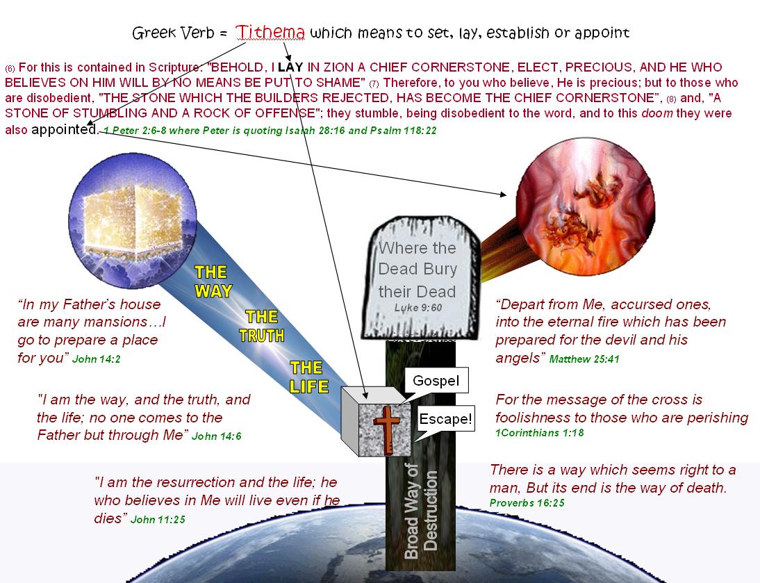 VERSE 6-8 (6)For this is contained in Scripture: "BEHOLD, I LAY IN ZION A CHIEF CORNERSTONE, ELECT, PRECIOUS, AND HE WHO BELIEVES ON HIM WILL BY NO MEANS BE PUT TO SHAME" (7)This precious value, then, is for you who believe; but for those who disbelieve, "THE STONE WHICH THE BUILDERS REJECTED, THIS BECAME THE CHIEF CORNERSTONE, (8)and, "A STONE OF STUMBLING AND A ROCK OF OFFENSE"; for they stumble being disobedient to the word, and to this doom they were also appointed.